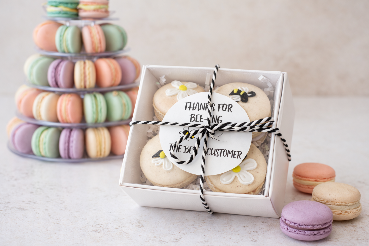 Custom French macarons for client appreciation, milestone moments, and elevated events.