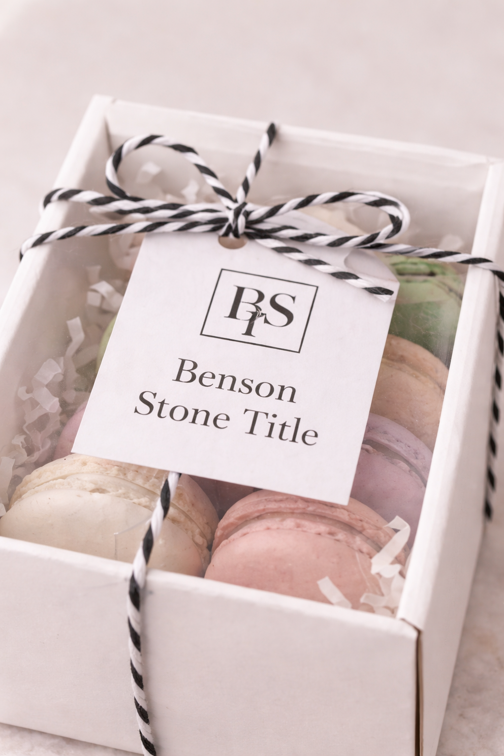 Polished macaron gifting for real estate teams, professional advisors, and service businesses.
